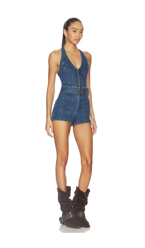 SHOW ME YOUR MUMU FORT WORTH ROMPER IN BLUE.