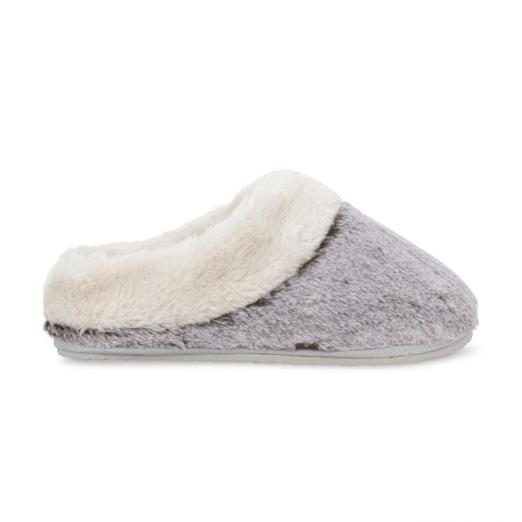 light gray slippers with cream fur cuff
