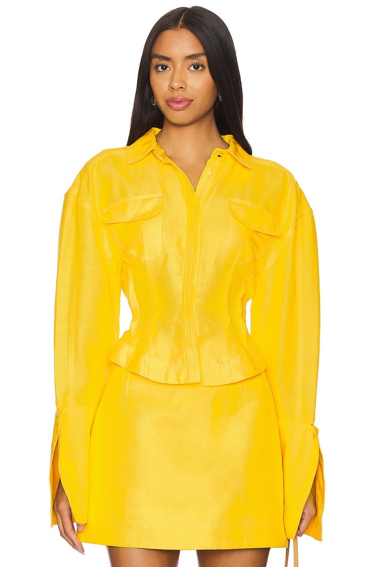 fitted yellow shacket