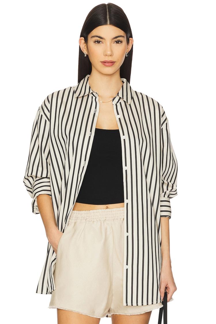 Effortless, polished comfort meets timeless stripes. This Plaza Shirt arrives in a creamy cream base with navy vertical stripes, crafted in midweight cotton poplin for a relaxed, oversized tunic silhouette. A classic collared neckline features front button closures and cuffed long sleeves you can roll for a laid‑back vibe. The versatile length drapes over shorts or leggings, or can be worn buttoned up with tailored bottoms for a chic work‑to‑weekend look. Dress it up with flats or keep it casual with sneakers—this shirt is a reliable layer for spring through autumn. Dry clean only for best care.