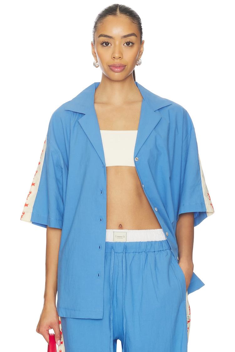 Relaxed and breezy, this matte blue boxy shirt crafted from lightweight cotton offers a laid-back yet refined look. Featuring half sleeves with subtle lapels and a loose fit, it’s designed for comfort and ease with a front button closure. The hip-length hem and minimalist style make it perfect for casual days, loungewear, or stylish travel ensembles. Pair it effortlessly for streetwear vibes or weekend brunches, embracing a modern and casual chic aesthetic.