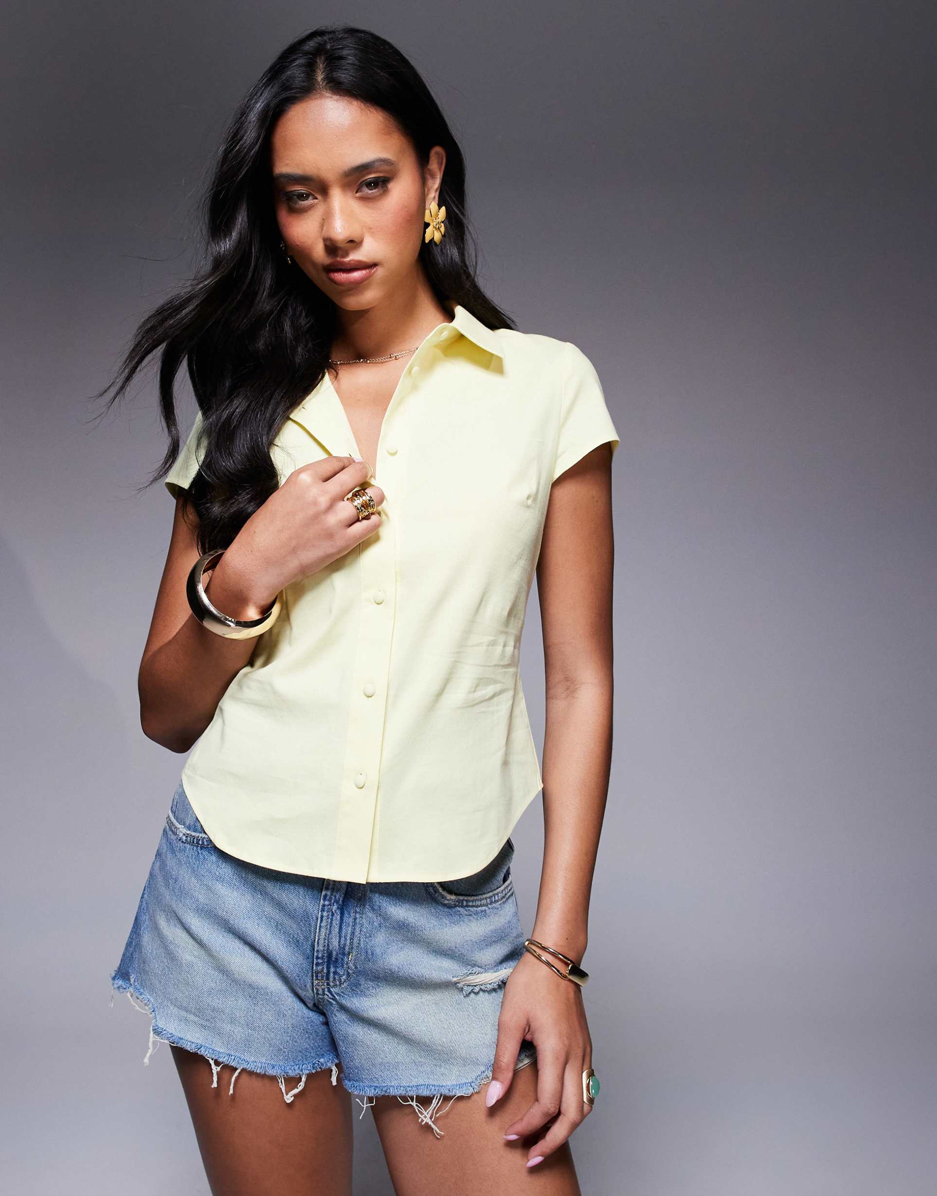 ASOS DESIGN CINCHED DETAIL SHIRT IN BUTTERMILK