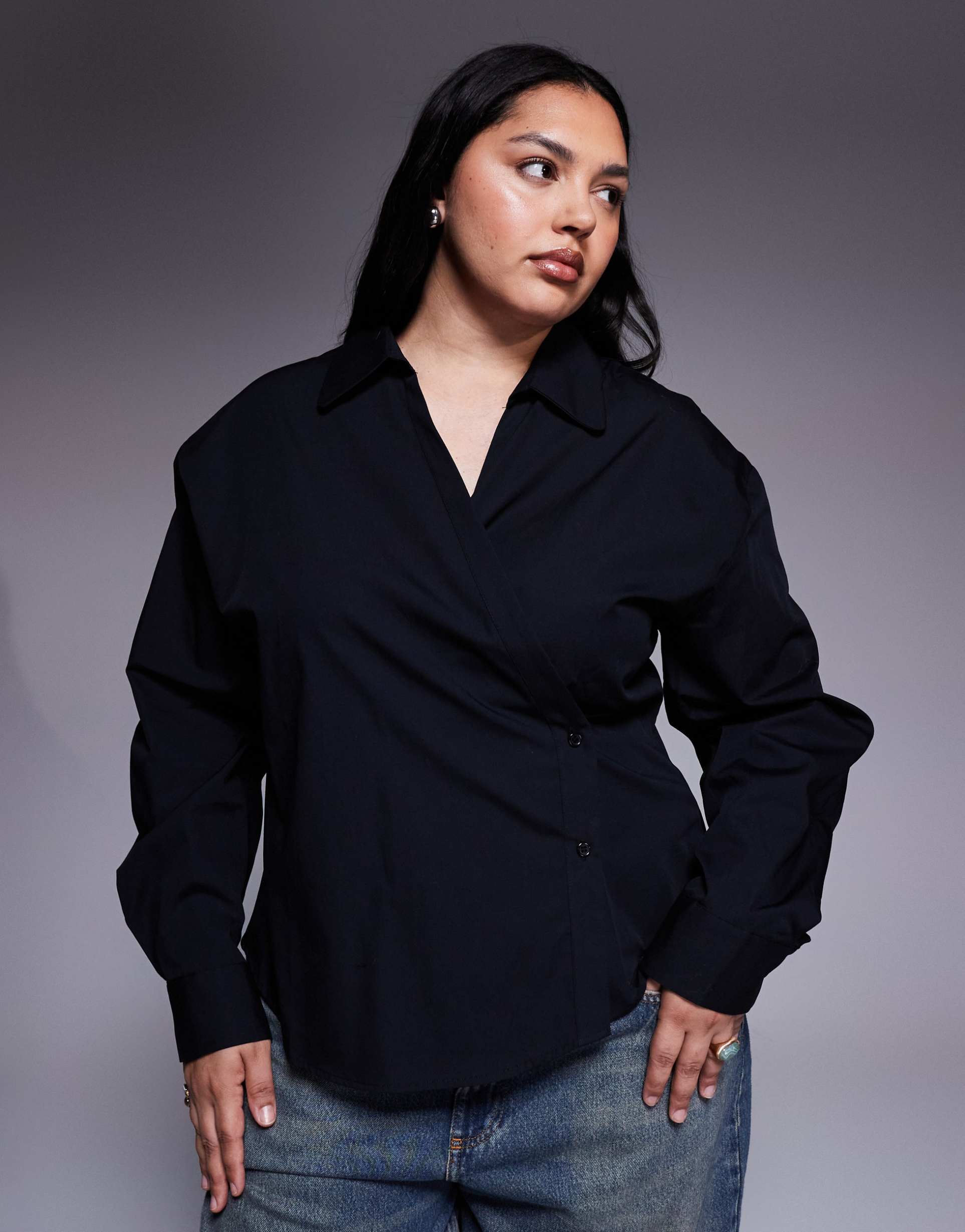 ASOS DESIGN CURVE WRAP SHIRT WITH COCOON SLEEVES IN BLACK