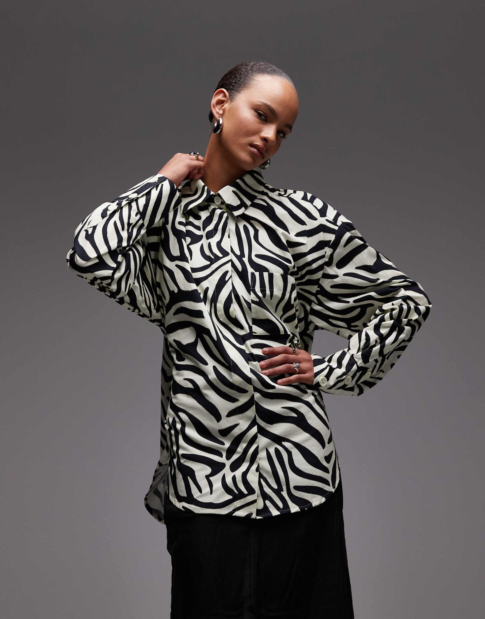 ASOS DESIGN OVERSIZED SHIRT WITH OPEN BACK DETAIL IN ZEBRA PRINT