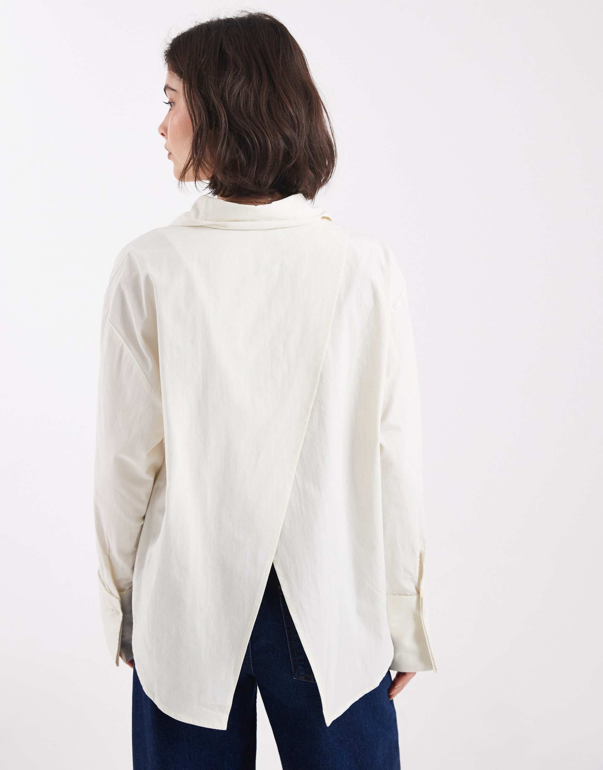 ASOS DESIGN OVERSIZED SHIRT WITH WRAP DETAIL IN CREAM