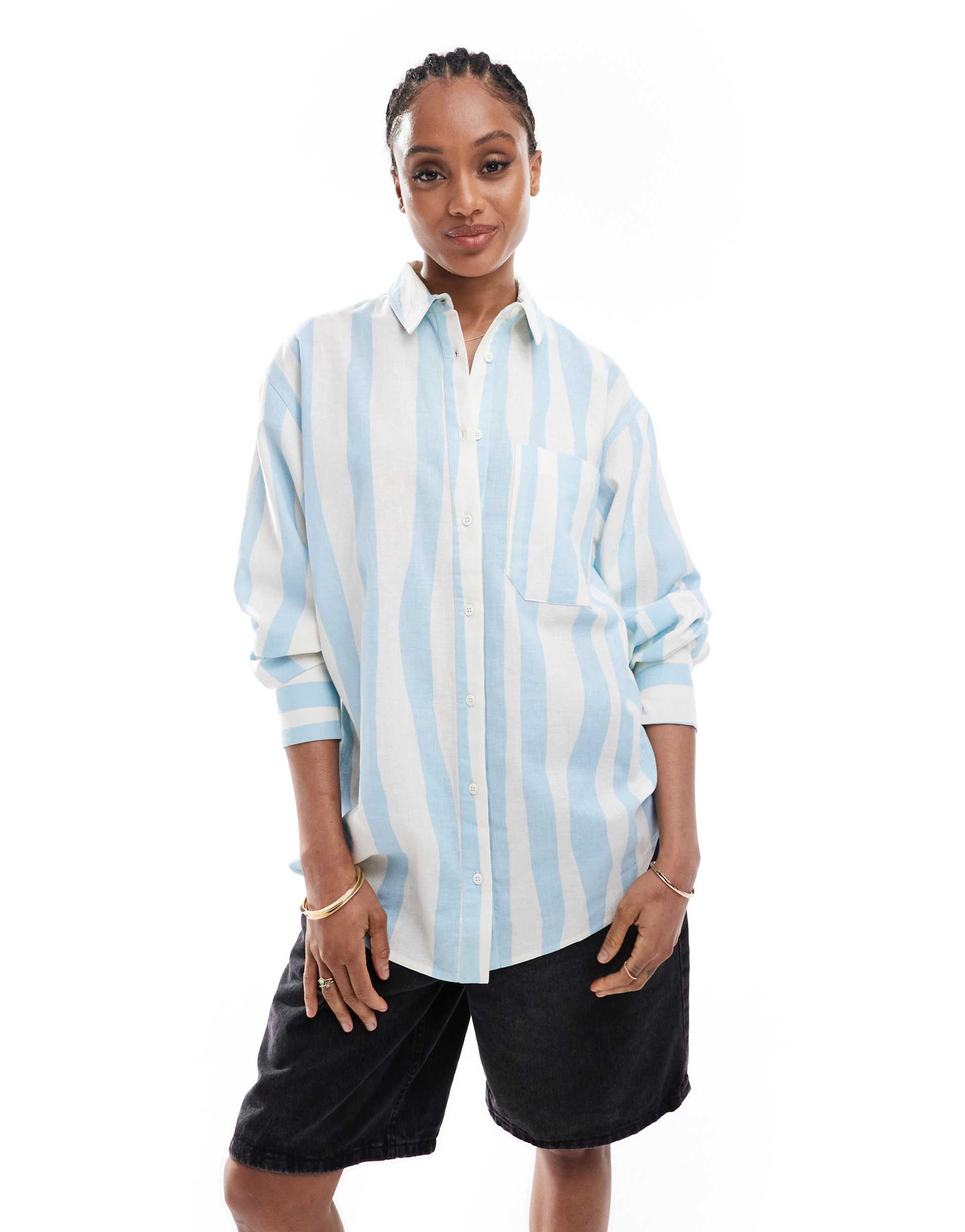 ASOS DESIGN TALL LINEN BLEND OVERSIZED SHIRT IN BLURRED STRIPES