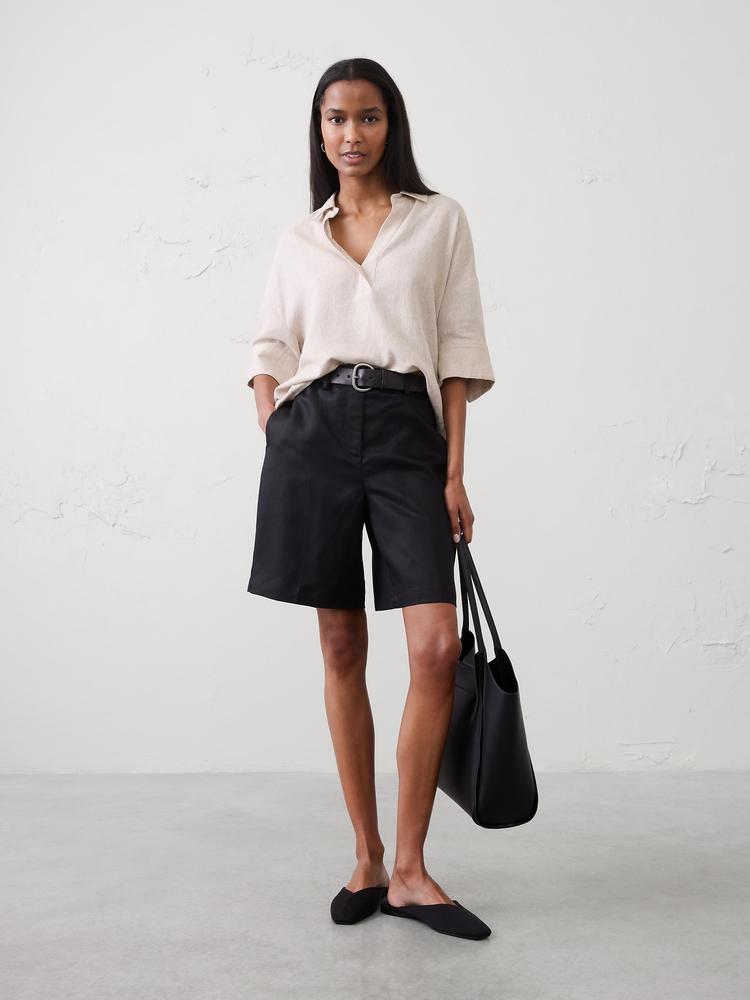 LINEN-BLEND DRAPEY POPOVER SHIRT