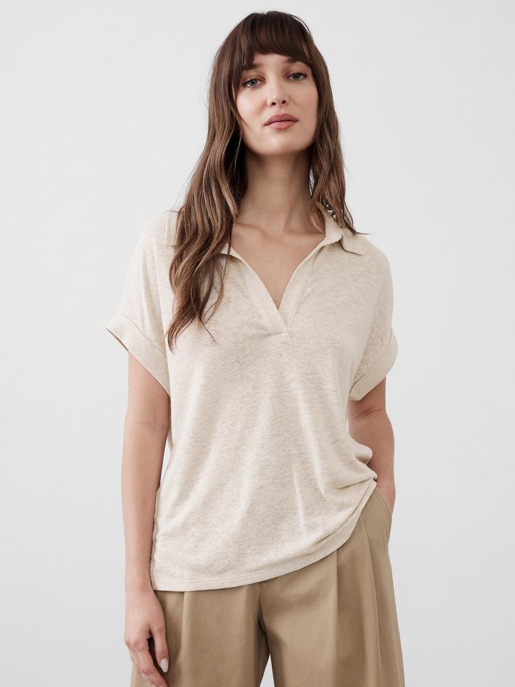 LINEN-BLEND JOHNNY COLLAR SHIRT