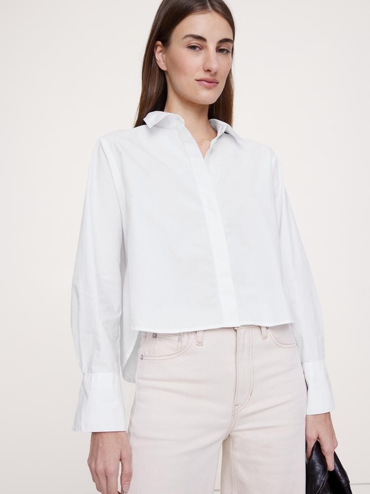 CROPPED COTTON POLIN SHIRT WITH ELBOW PATCHES