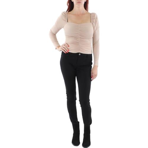 BCBGMAXAZRIA WOMEN'S FITTED LONG SLEEVE TOP RUCHED BODICE SWEETHEART NECK SHIRT, DUSTY ROSE, LARGE