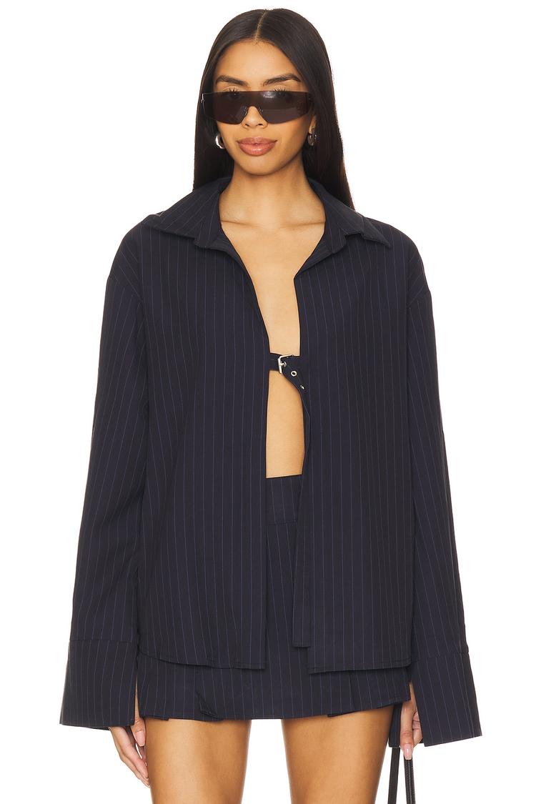 dark blue striped shacket