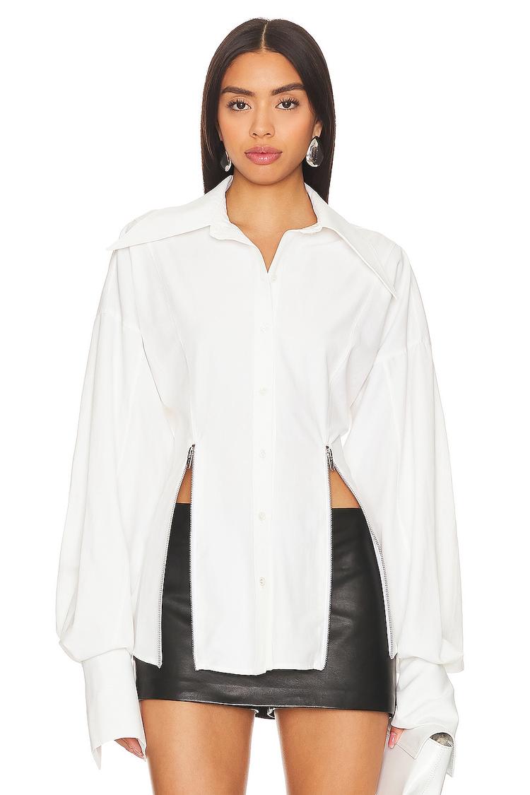 Elevate your everyday with this crisp white Zipper Detail Shirt. Crafted in a lightweight poplin blend (60% cotton, 40% polyester), it offers a relaxed, oversized silhouette with voluminous blouson sleeves and a classic turn-down collar. Front button closure pairs with functional front zippers for a modern twist, while cuff buttons add subtle polish. The hip-length hem keeps the look versatile enough to wear with tailored shorts or sleek denim. Perfect for casual days at the office or elevated weekend outings—effortless, polished, and endlessly versatile.