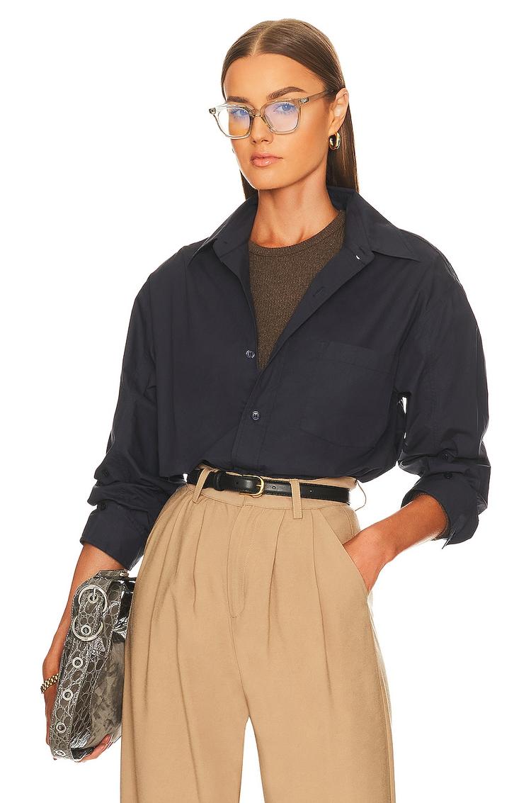 Lightweight crisp cotton poplin fabric and a classic collar shape define this Kayla Shirt, offering a regular fit and long sleeves with button cuffs. The front button closure and shirttail hem provide a timeless silhouette perfect for casual outings, workwear, and business casual settings. Its matte black solid colour adds versatility and understated elegance, making it an essential staple for transitional spring, summer, and autumn wardrobes.