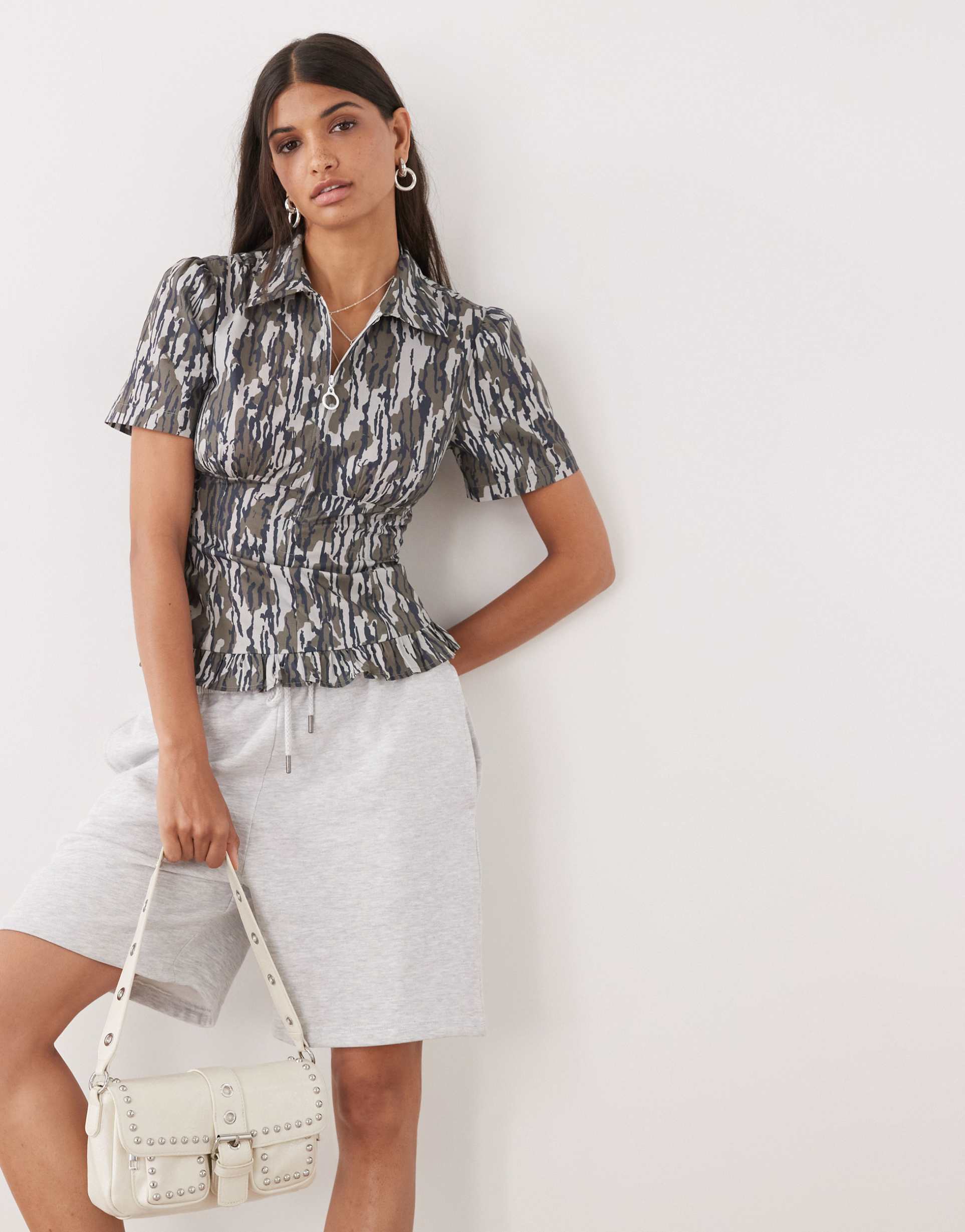 COLLUSION CINCHED WAIST SHIRT IN CAMO PRINT