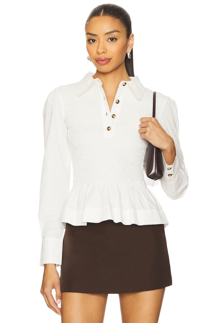 white smocked blouse