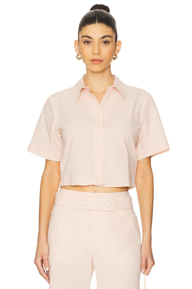 Light beige seersucker fabric with a subtle crepe texture defines this cropped shirt, combining a relaxed regular fit with classic business chic elements. Featuring a structured collar and front button closure, its half sleeves and cropped length offer a fresh take on a timeless silhouette. Crafted from a breathable cotton-modal-elastane blend, this lightweight shirt is ideal for spring and summer days. Versatile for casual outings, brunch dates, or business casual settings, it seamlessly blends minimalist style with everyday comfort.