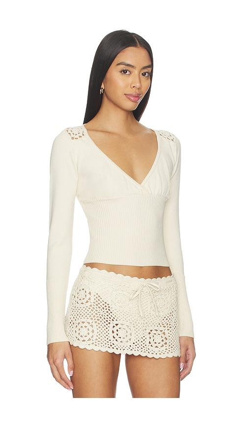 FRANKIES BIKINIS ARLO CLOUD KNIT LONG SLEEVE SHIRT IN IVORY.