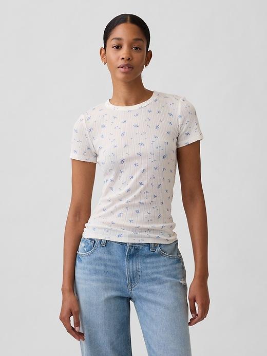 RIBBED POINTELLE CREWNECK T-SHIRT