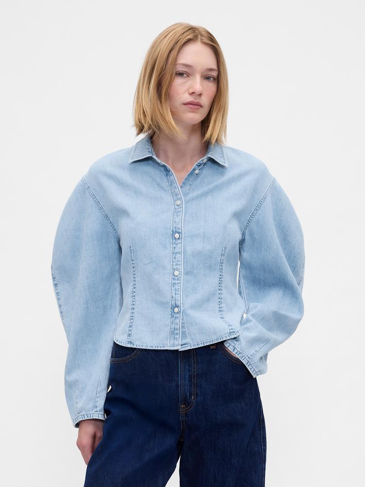 denim balloon sleeve shirt