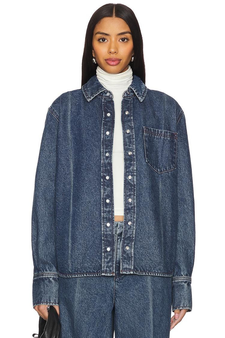 Classic denim meets relaxed comfort in this Mae Button Down shacket crafted from 100% cotton denim. Featuring a hip-length silhouette with a turn-down collar, long regular sleeves, and a front snap button closure, it offers a laid-back yet polished look. The breast pouch pocket and buttoned cuffs add subtle design details in matte silver, enhancing its casual chic appeal. Perfect for casual outings, streetwear vibes, and everyday wear during spring, autumn, or all-weather transitions, this versatile piece pairs effortlessly with denim bottoms or layered over tees for travel and weekend styles.