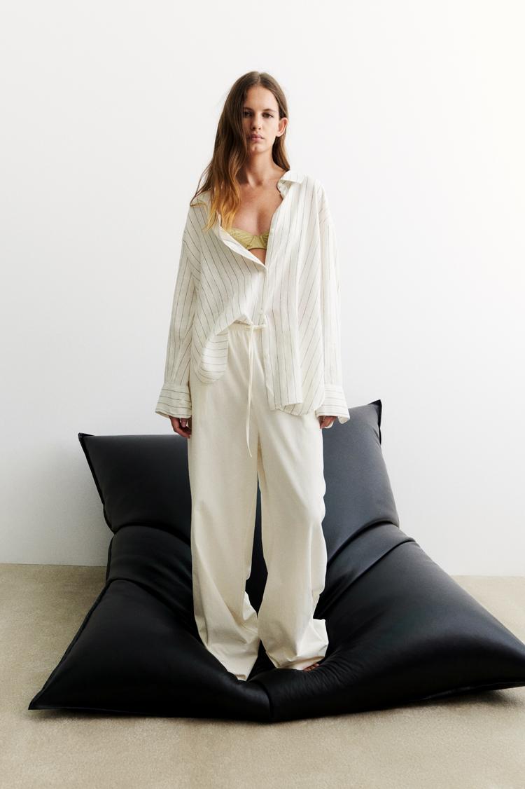 Oversized shirt in an airy, woven linen and viscose blend. Collar, buttons at front, and a straight-cut hem. Dropped shoulders, long sleeves, and adjustable cuffs with buttons.