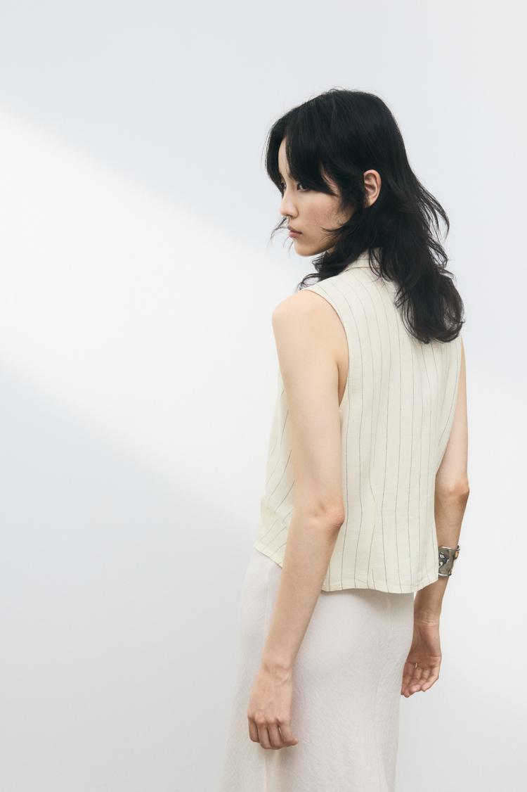 LINEN-BLEND SLEEVELESS SHIRT