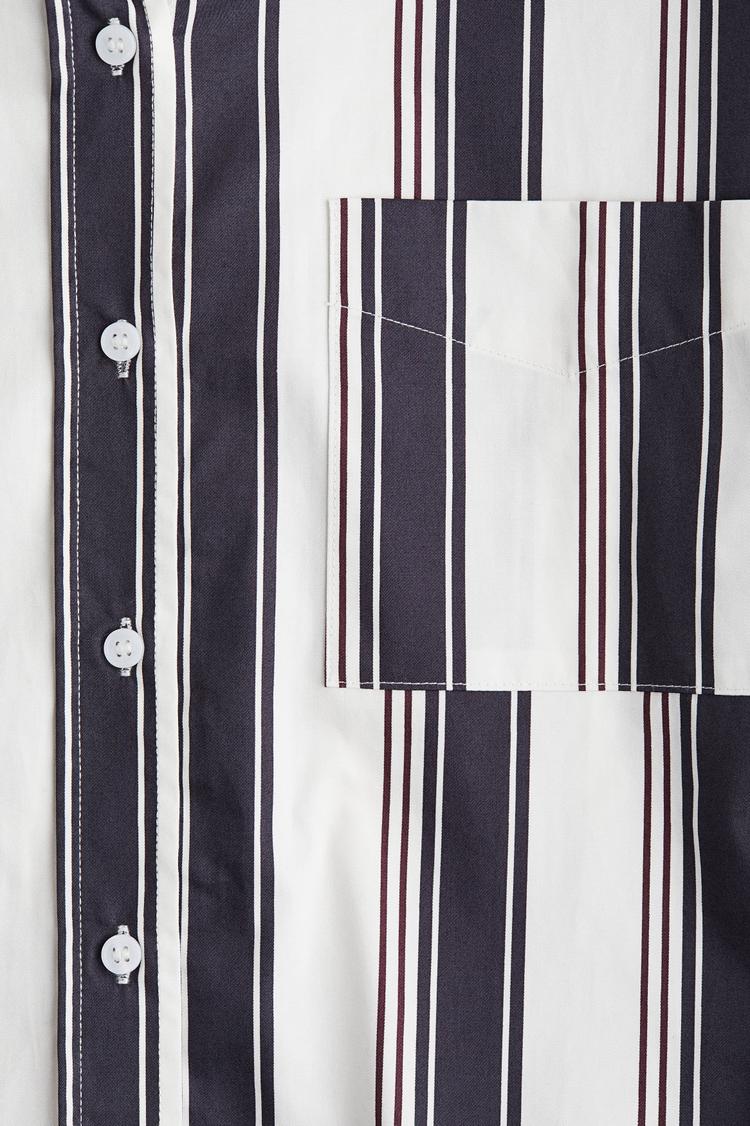 Classic vertical stripes in black and white adorn this loose-fitting poplin shacket, offering a timeless minimalist appeal. Featuring long sleeves with regular styling and a traditional collar neckline, its hip-length silhouette provides effortless layering for spring and autumn days. The button closure enhances the casual chic vibe, making it perfect for casual outings, travel adventures, or streetwear looks. The crisp, breathable poplin fabric ensures comfort and ease, while the all-over striped pattern adds visual interest without overwhelming the look.