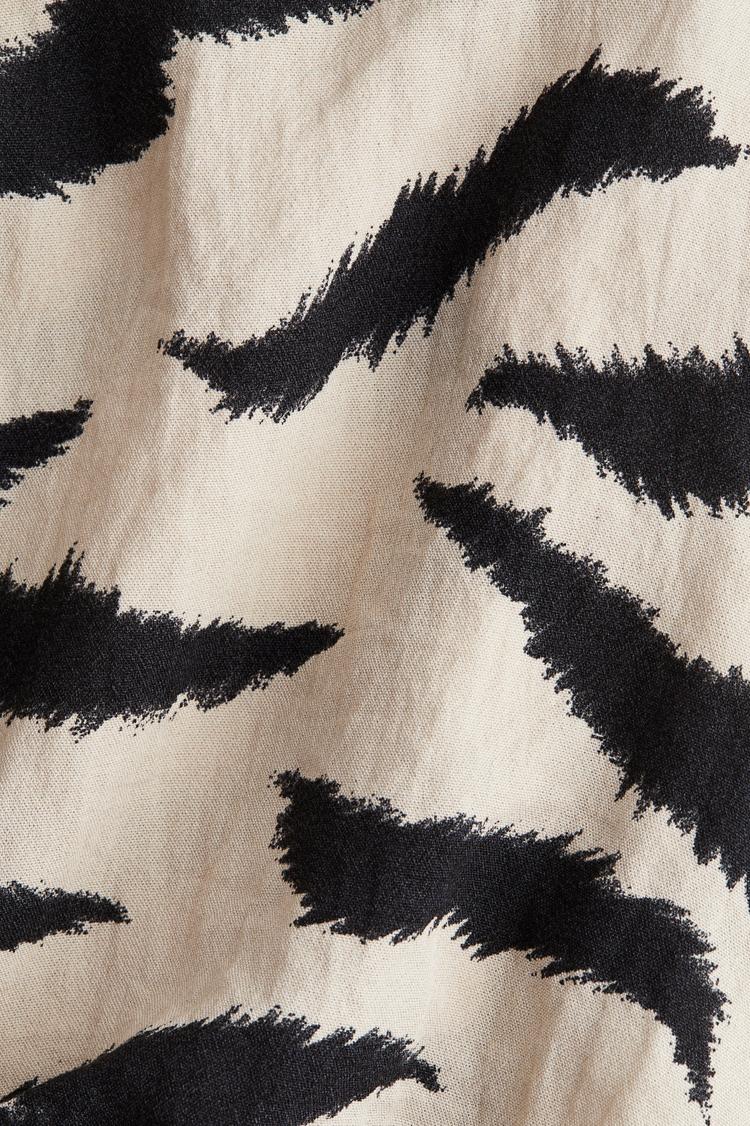 Bold abstract print in cream and black creates a striking visual on this cropped, relaxed-fit shirt. Featuring a classic collar and half sleeves, this short printed shirt offers a casual chic vibe perfect for warm spring and summer days. The button closure and covered back enhance its laid-back yet stylish appeal, making it an ideal choice for casual outings, beach vacations, or everyday loungewear.