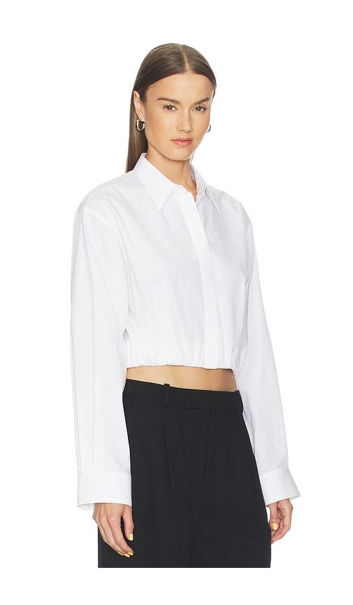 HELMUT LANG CROPPED GATHER SHIRT IN WHITE.