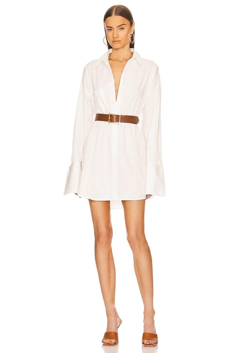 Crisp cotton poplin and an oversized silhouette define this thigh-length shirt with a classic collar and long sleeves featuring buttoned cuffs. The loose fit combined with a front button closure and a breast slip pocket adds functional elegance to this minimalist staple. Ideal for casual days, workwear, or business casual events, this versatile piece pairs effortlessly with belts or worn loose for a relaxed vibe. Suitable for spring through autumn, it balances comfort and style with a timeless white shade and durable cotton fabric.