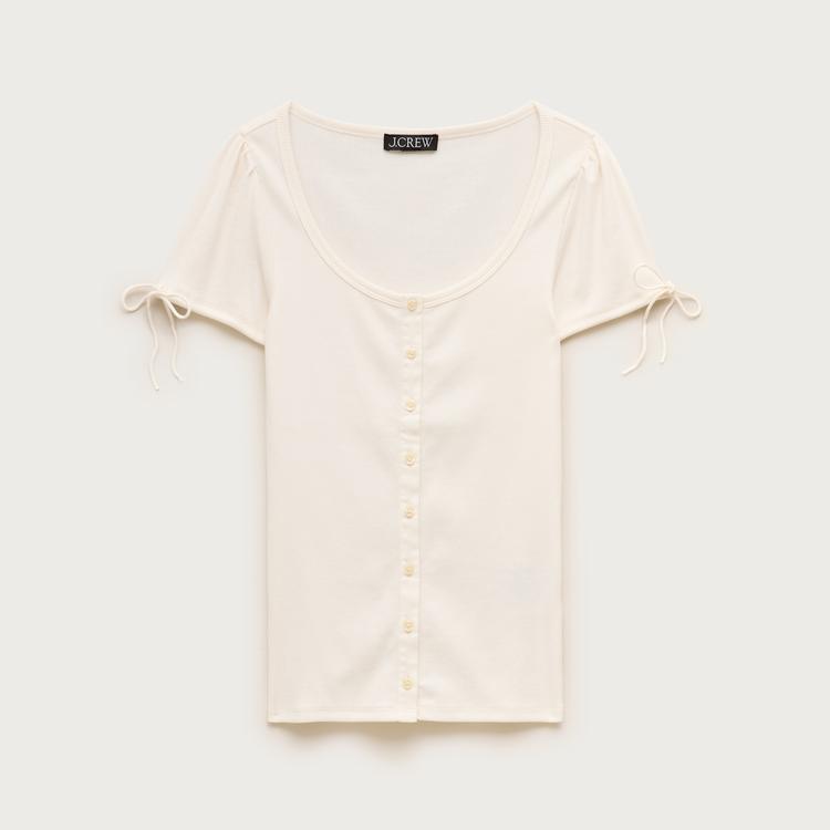 PERFECT RIB BUTTON-UP SHIRT WITH SATIN TRIM