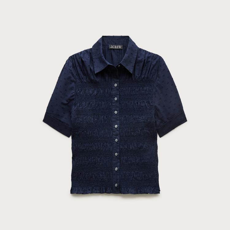 SMOCKED BUTTON-UP SHORT-SLEEVE SHIRT