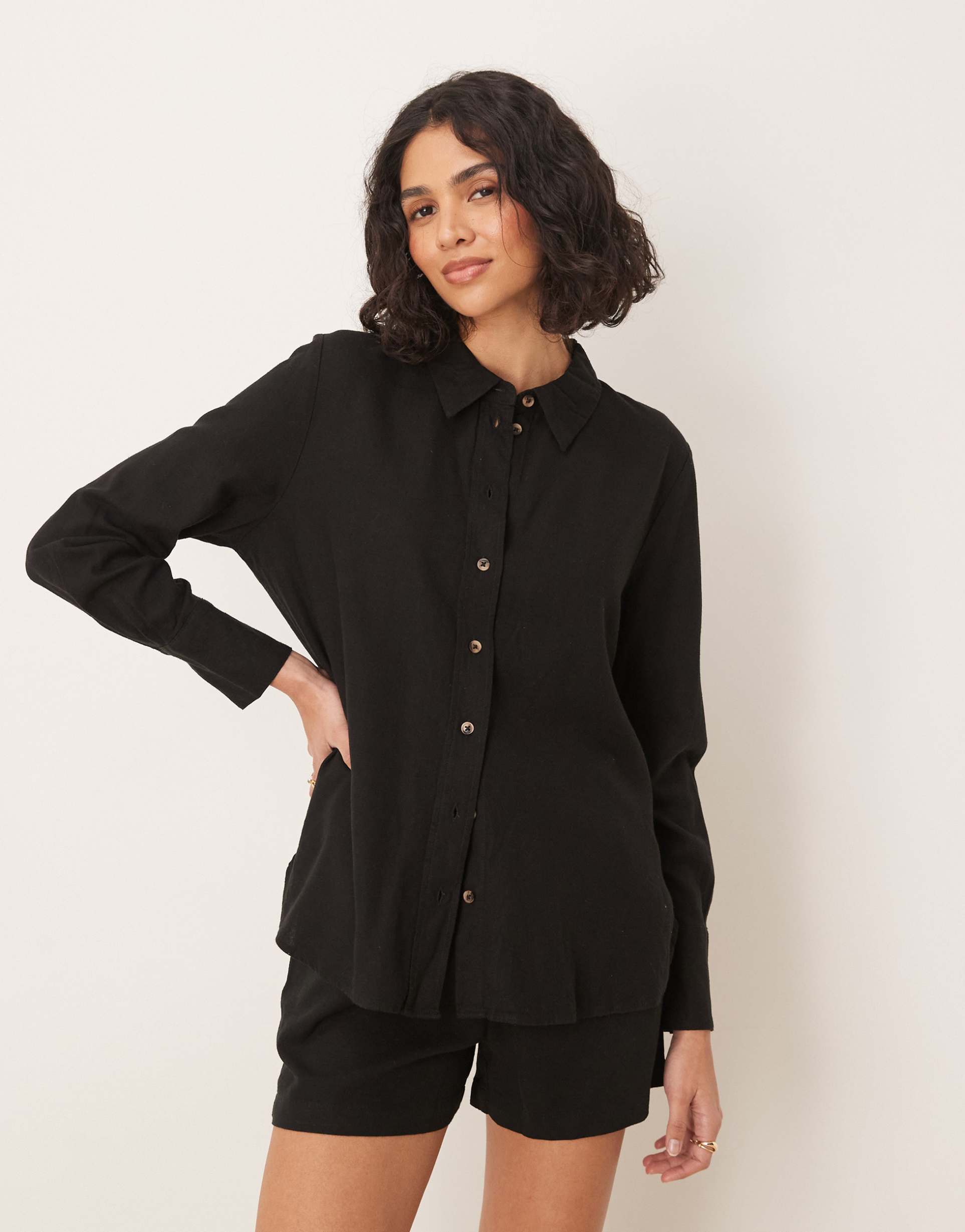 JDY RELAXED LINEN SHIRT IN BLACK - PART OF A SET