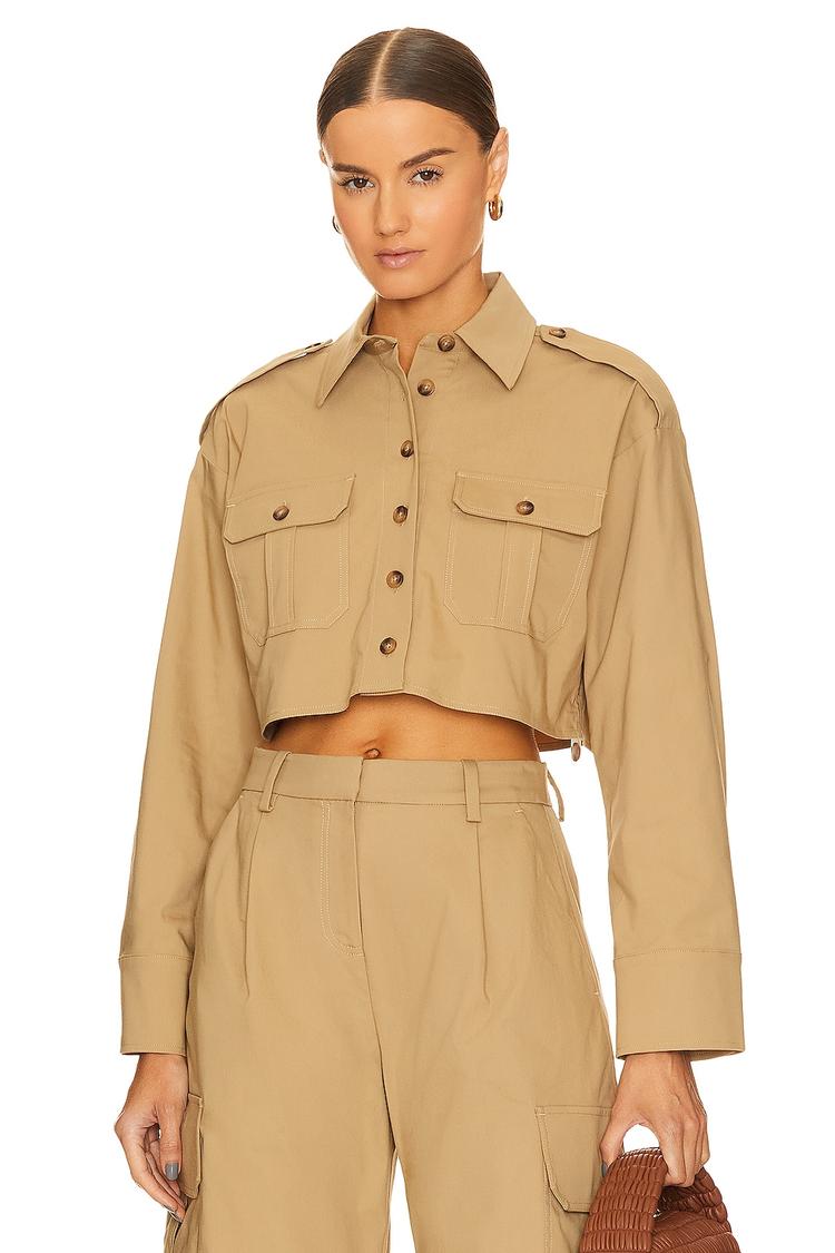 khaki cropped cargo shirt