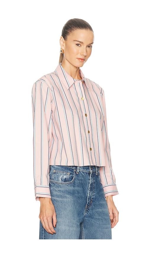 L'AGENCE COSETTE CROP HI LOW SHIRT IN PINK.