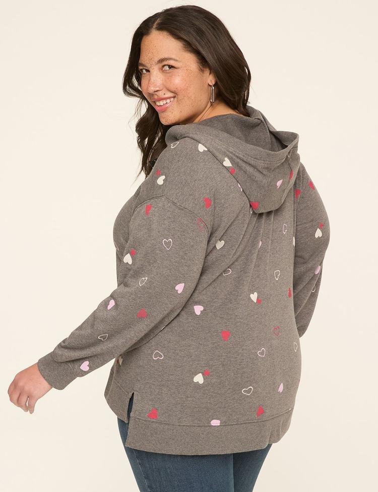 Available in Plus Size "This heart-print hoodie in soft, cozy french terry does season-of-love style just right. FIT: Classic. Designed for curves and a not-too-tight, not-too-loose, just-right fit. Front Length (On Body): 31"" Back Length (On Body): 33"" Longer length is perfect for added coverage FEATURES: V-neck with hood Long sleeves Ribbed trim Side-slits at high-low hem for ease and movement FABRIC: French Terry. Ultra-cozy with a just-right feel (AKA not-too-light, not-too-heavy). MACHINE WASH COLD WITH LIKE COLORS ONLY NON-CHLORINE BLEACH WHEN NEEDED TUMBLE DRY LOW COOL IRON IF NEEDED 60% COTTON 40% POLYESTER Item Number #413751 Imported Plus Size Top "". Plus Size Heart Print V-Neck Hoodie Sweatshirt, in Mini Hearts, 18/20, Women's, Lane Bryant