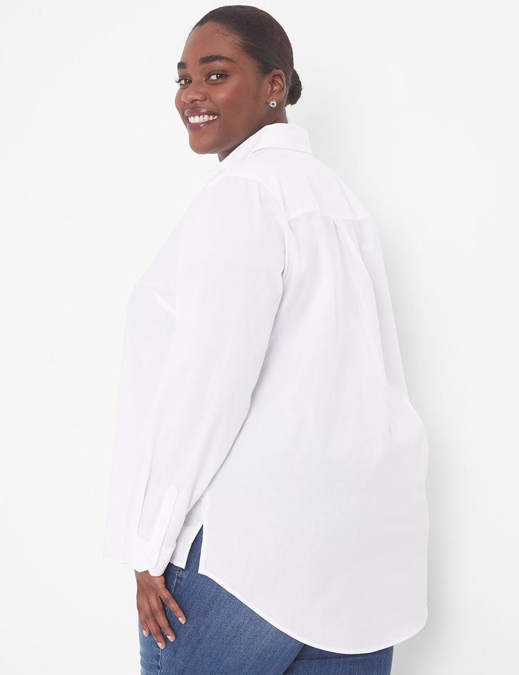 Available in Plus Size A relaxed fit, crisp woven shirt with borrowed-from-the-boys style that feels like it was made for you.Classic collar. Button-front design. Long sleeves with triple-button cuffs. Shirttail hem. Bust darts provide shape and the perfect fit. Lightweight woven poplin fabric. Slightly longer length is perfect with skinny jeans and leggings.PETITE SIZES: Designed, cut and tailored specifically for your proportions. Item Number #375374 Front Length (On Body): 31" Imported Plus Size Top ". Plus Size Relaxed Button-Front Boyfriend Shirt, in White, 10/12, Women's, Lane Bryant