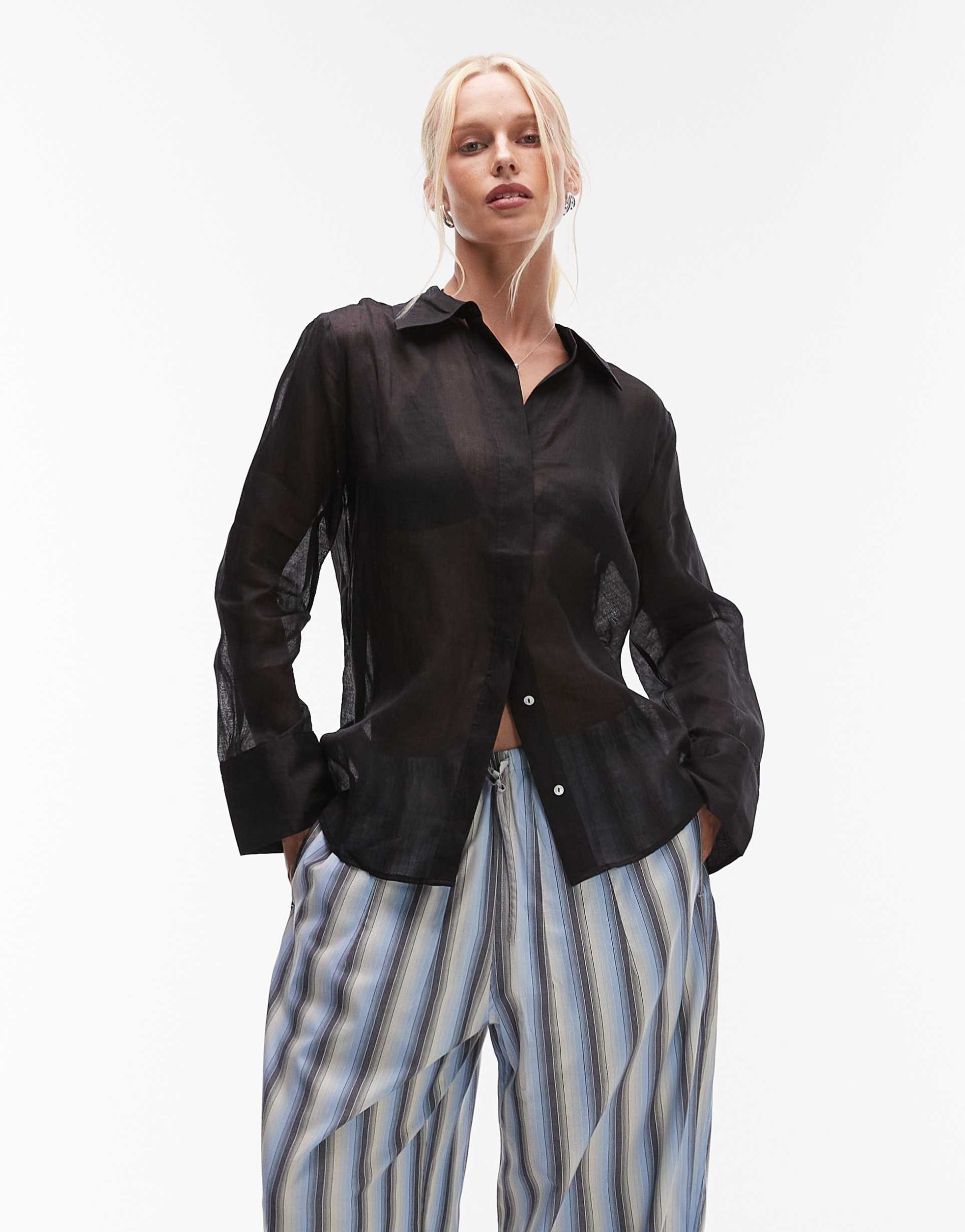 MANGO RAMIE LIGHTWEIGHT SHIRT IN BLACK