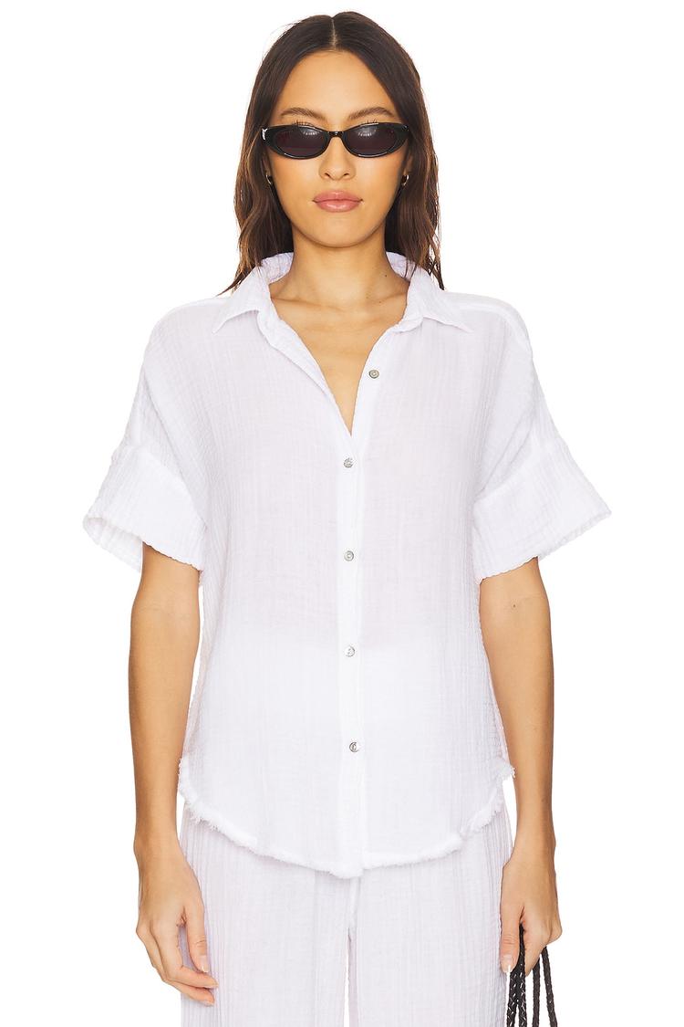 Lightweight cotton gauze and a relaxed fit make this Bailey Button Down Shirt an essential for warmer seasons. Featuring a classic collar, half sleeves, and a hip-length silhouette, it offers effortless comfort and breathability. The front mother-of-pearl button closure and delicate fringed hem add subtle design interest to this minimalist white shirt. Ideal for casual outings, brunch dates, and business casual settings, its semi-sheer fabric lends a breezy, modern vibe that pairs well with a variety of looks.