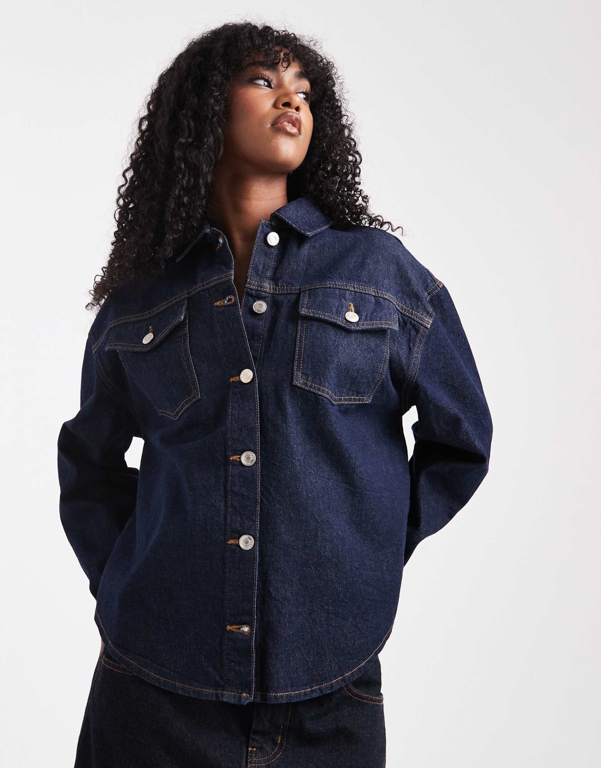 Classic dark blue denim crafted from 100% cotton offers a timeless western shirt silhouette. Featuring a spread collar, button front placket, and chest pockets, this relaxed fit shirt ensures comfort and effortless style. Long sleeves and drop shoulders add to its casual chic vibe, making it perfect for casual outings, everyday wear, and street style looks. The hip-length cut balances functionality and fashion, ideal for layering or wearing alone across seasons.