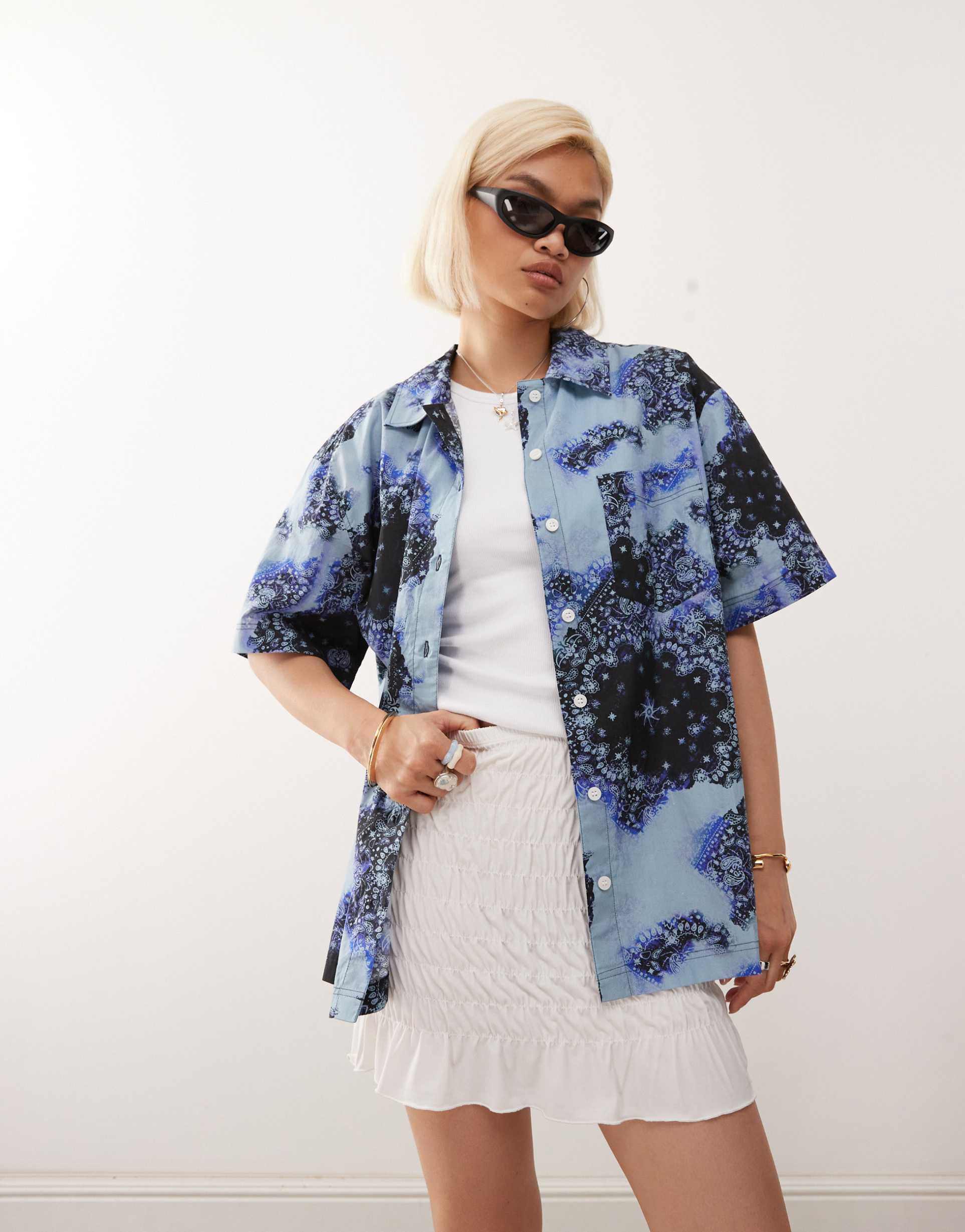 MONKI POPLIN SHORT SLEEVE SHIRT IN BLUE SCARF PRINT - PART OF A SET