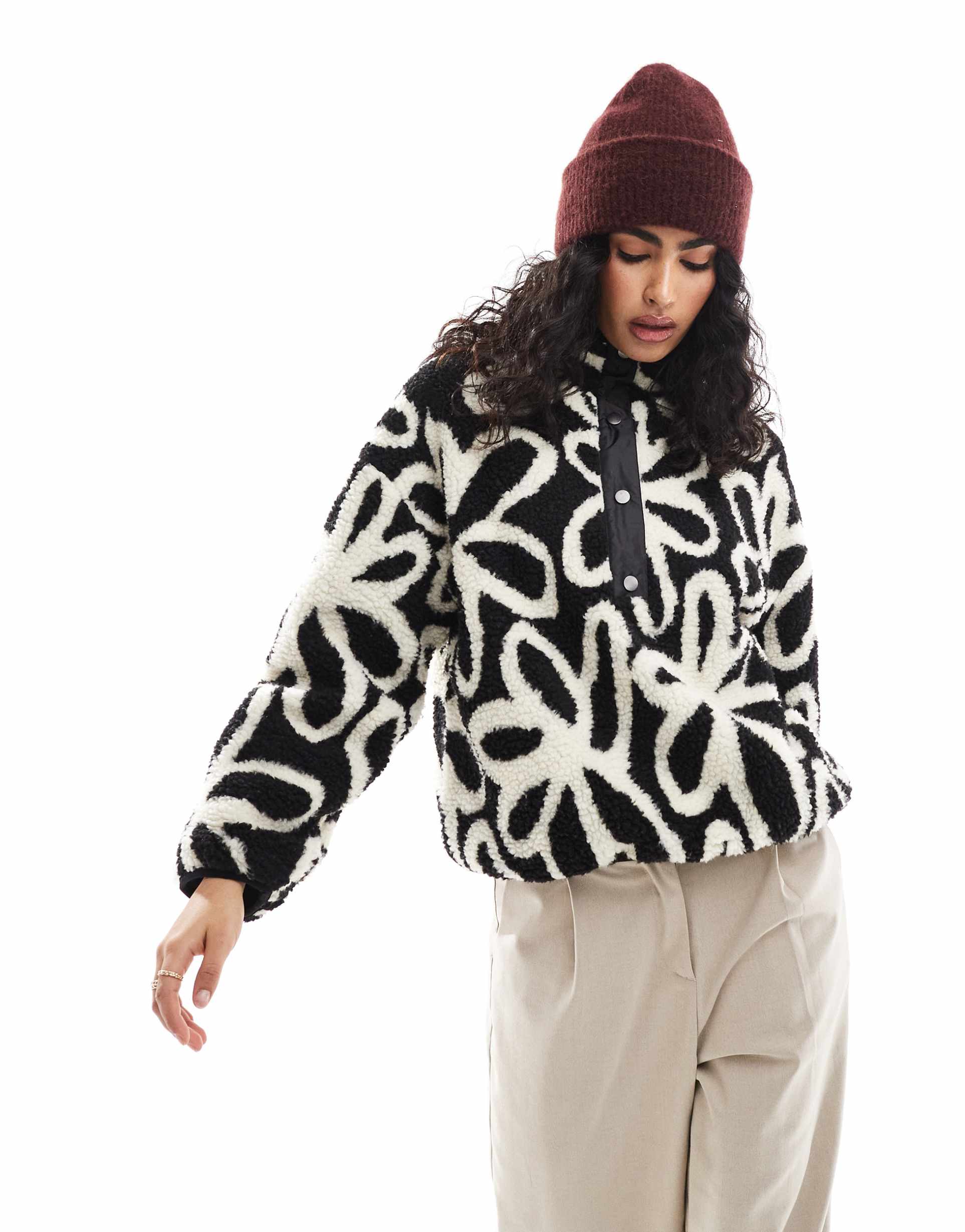 ONLY BUTTON DOWN BORG FLEECE IN WHITE FLORAL