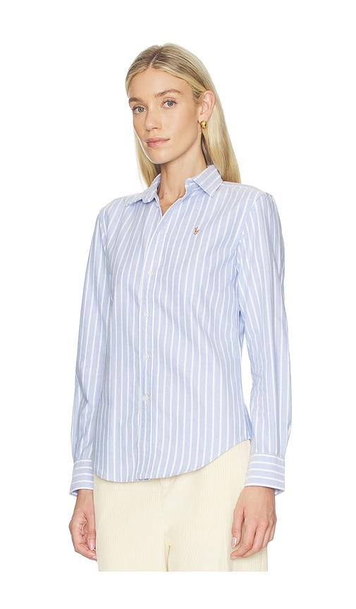 POLO RALPH LAUREN LONG SLEEVE BUTTON FRONT SHIRT IN BABY BLUE,WHITE.