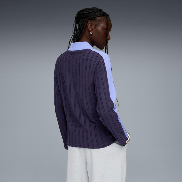 PUMA T7 WOMEN'S RELAXED LONG SLEEVE POLO SHIRT IN PURPLE, SIZE L