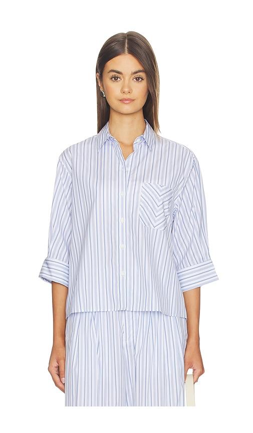 RAG & BONE LUCIA STRIPE POPLIN SHIRT IN BABY BLUE.
