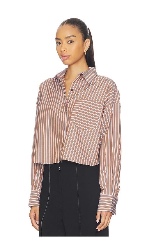RAG & BONE MARIN CROPPED STRIPED SHIRT IN BROWN,WHITE.