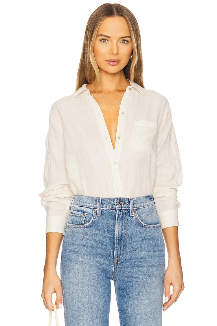 Crisp 100% organic cotton lends a fresh, breathable feel to this classic Ellis Shirt. Featuring a regular fit and traditional collar with a front button closure, this long-sleeve hip-length shirt is completed by cuffed sleeves and a single front slip pocket. Its minimalist solid white design ensures versatile wearability, making it an ideal choice for casual outings, workwear, and business casual occasions, as well as everyday comfort. Midweight gauze fabric adds subtle texture and a relaxed yet polished silhouette.