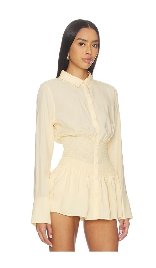 SEVEN WONDERS ADORA LONG SLEEVE SHIRRED SHIRT IN LEMON.