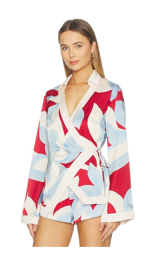 SEVEN WONDERS AMOREE LONG SLEEVE WRAP SHIRT IN RED, BABY BLUE.