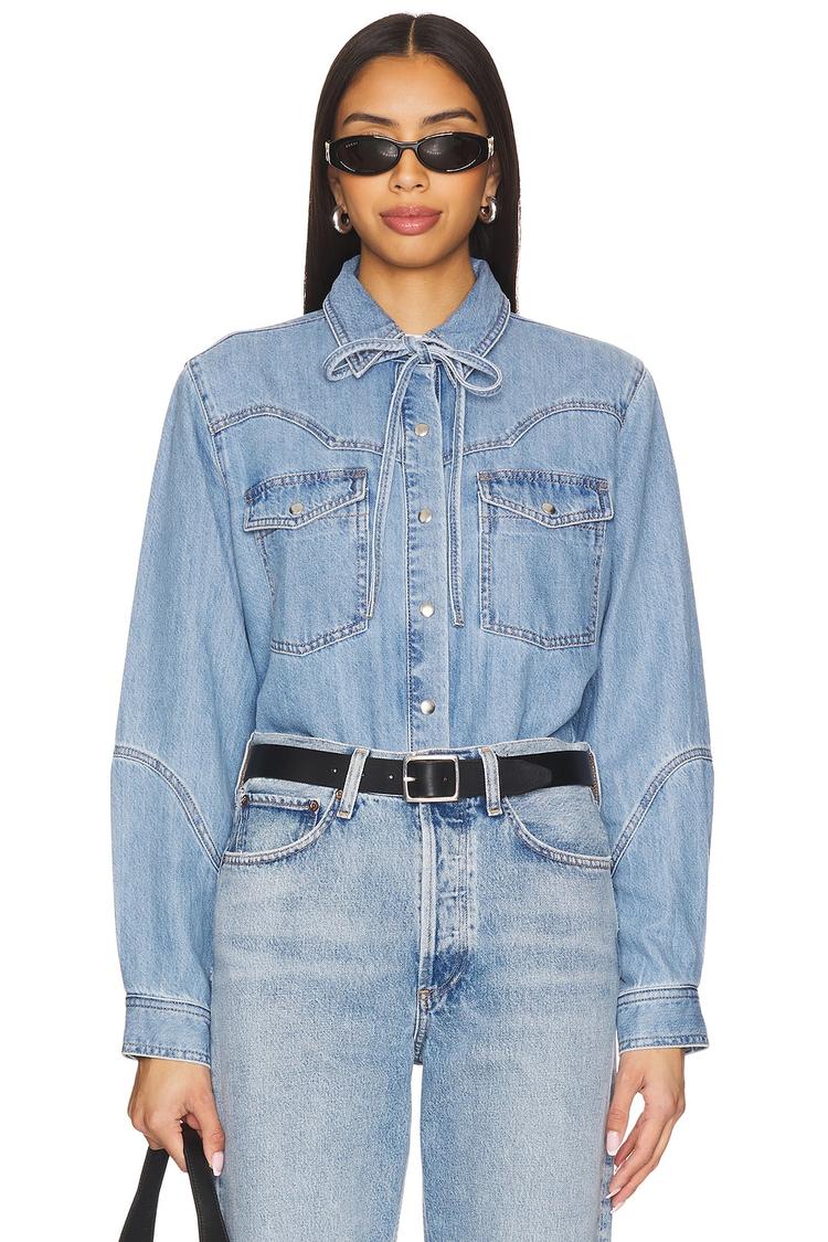 Classic denim in a regular fit defines this hip-length shacket, perfect for transitional seasons like spring and autumn. Featuring long, regular sleeves and a traditional collar, it closes with front snap buttons for ease and style. Functional breast pockets add a practical touch while the detachable neck tie offers versatile styling options. Ideal for casual days, workwear, or streetwear, this denim piece blends timeless appeal with modern utility, making it a staple for everyday and smart-casual occasions.